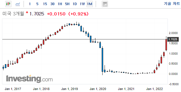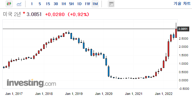 0.08%에서 0.01상승한 0.09%마감 (22년 4월 1일 장단기 금리차 역전)