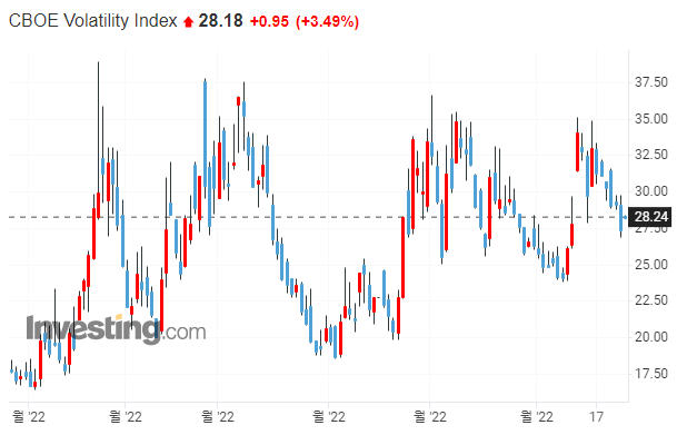 → 아직 VIX지수가 충분히 하락하지 않았습니다. VIX는 변동성을 의미하므로, 아직 시장은 하락에 대한 불안감을 가지고있는 것으로 보입니다.