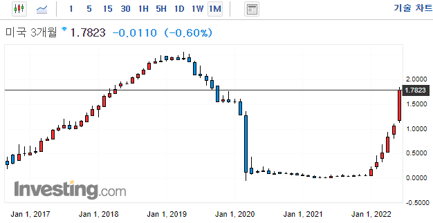 0.09%에서 0.03상승한 0.12%마감 (22년 4월 1일 장단기 금리차 역전)