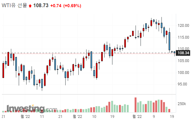 ▶섹터 전반이 하락한 배경 중 하나는 인플레이션을 잡기위한 급격한 금리 인상이 앞으로 경기 침체를 불러올 것이라는 공포입니다. 현재 원자재와 유가 상승이 인플레이션을 이끌고 있는 만큼, 결국 유가의 향방이 향후 주가에 큰 영향을 미칠 수 있습니다.