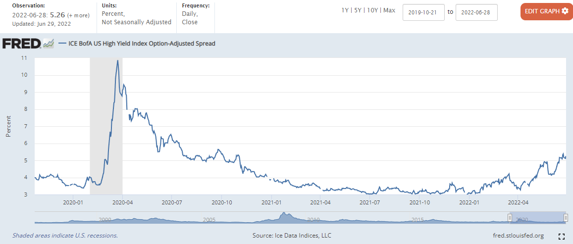 하이일드 채권 스프레드 : 하이일드 채권 수익률 에서 국채 수익률을 뺀 값으로, 이 값이 상승하면 시장이 위험하다는 신호로 볼 수 있습니다. 4% 이하로 하락해야 시장이 안정적인 것으로 판단합니다.
