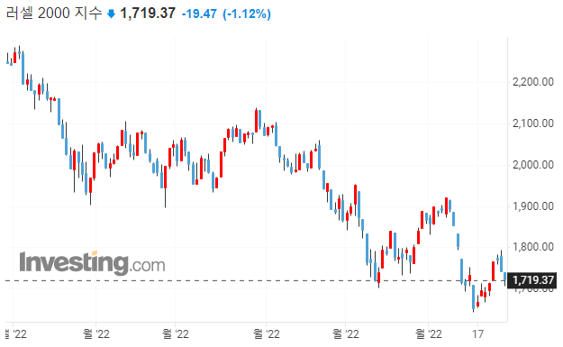 → 러셀에 지지선이 깨졌습니다. 7월에도 75bp금리 인상이 예상되기 때문에 금리에 민감한 중소형주부터 영향을 받는다고 볼 수 있겠습니다.
