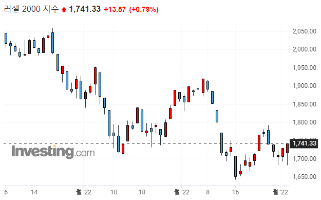 다우 -0.42% / S&P500 +0.16% / 나스닥 +1.75% / 러셀 2000 +0.79%