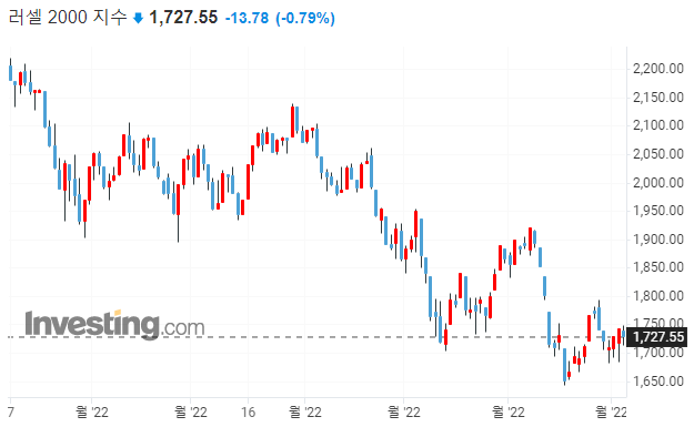 → 러셀에 지지선이 깨졌습니다. 7월에도 75bp금리 인상이 예상되기 때문에 금리에 민감한 중소형주부터 영향을 받는다고 볼 수 있겠습니다.