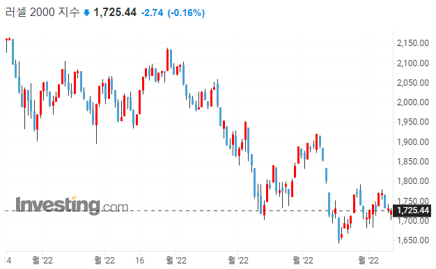 → 러셀에 지지선이 깨졌습니다. 7월에도 75bp금리 인상이 예상되기 때문에 금리에 민감한 중소형주부터 영향을 받는다고 볼 수 있겠습니다.