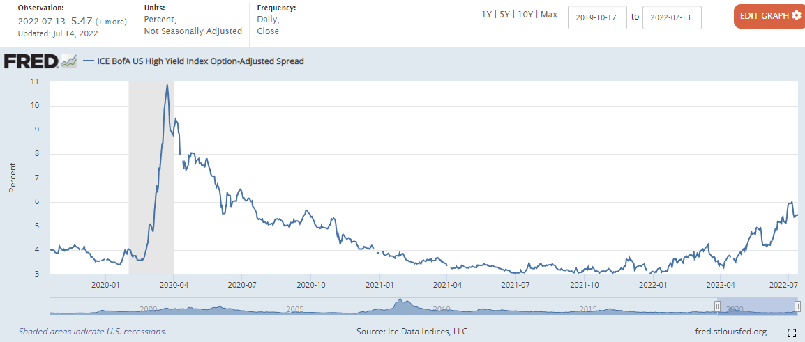 하이일드 채권 스프레드 : 하이일드 채권 수익률 에서 국채 수익률을 뺀 값으로, 이 값이 상승하면 시장이 위험하다는 신호로 볼 수 있습니다. 4% 이하로 하락해야 시장이 안정적인 것으로 판단합니다.