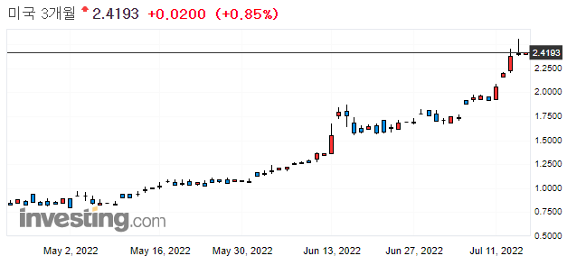 2022.07.14 - [주식 정보/미국) 시황 체크] - 미국 시황) 미국 금리 1%(100bp)인상 가능성 높아졌다. _22년7월14일