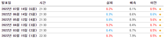 5. 7월 13일) 근원 소비자물가지수, 소비자물가지수 (CPI)