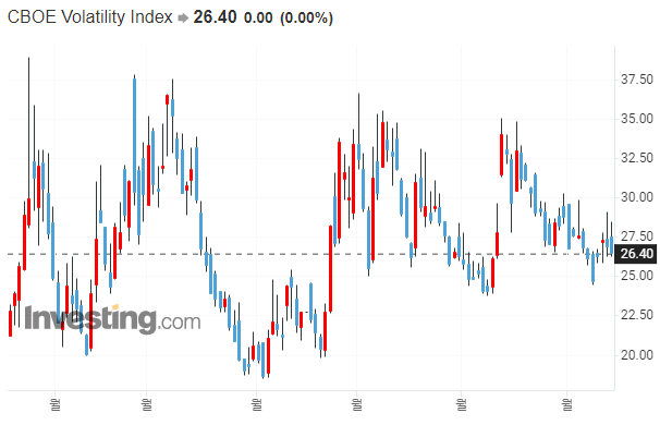→ VIX의 저점이 점차 올라가고 있습니다. VIX를 기술적분석에 관점에서보면 삼각 수렴형입니다. 이 경우, 불안정한 균형이 깨지면서 큰 변동성이 나타나게되는데요. VIX가 23 이하가 되기전에는 아직 안심할 수 없을 것 같습니다.