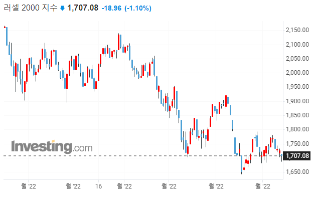 → 러셀에 지지선이 깨졌습니다. 7월에도 75bp금리 인상이 예상되기 때문에 금리에 민감한 중소형주부터 영향을 받는다고 볼 수 있겠습니다.