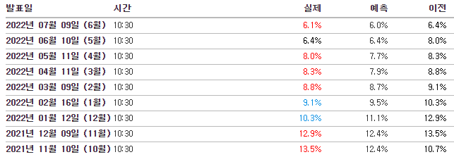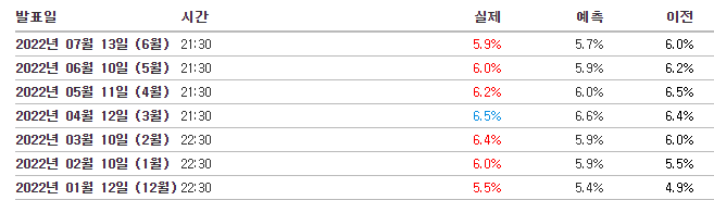 5. 7월 13일) 근원 소비자물가지수, 소비자물가지수 (CPI)