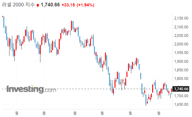 → 러셀에 지지선이 깨졌습니다. 7월에도 75bp금리 인상이 예상되기 때문에 금리에 민감한 중소형주부터 영향을 받는다고 볼 수 있겠습니다.