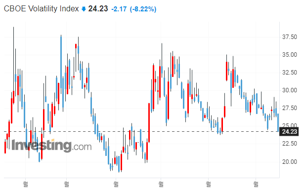→ VIX가 24까지 하락했습니다. 점차 센티멘탈이 긍정적으로 돌아오고 있는데요. 최근 발표되는 지수를 보면 고용은 여전히 강하고, 임금 상승률은 점차 하락하는 모습 등 미국 경제가 매우 견고하다는 인식이 확대되고 있는 것 같습니다.
