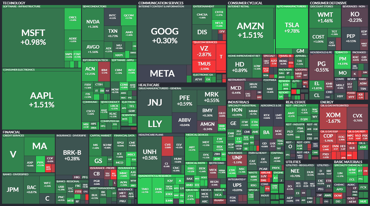 Tesla(TSLA) – Tesla는 자동차 제조업체 가 2분기 월스트리트 예상보다 약간 나은 실적을 발표 한 후 하루 9.8% 상승했습니다 . Refinitiv에 따르면 Tesla는 주당 2.27달러의 수익과 169억 3,000만 달러의 수익을 올렸으며 예상 주당 1.81달러, 171억 달러의 수익을 올렸습니다.