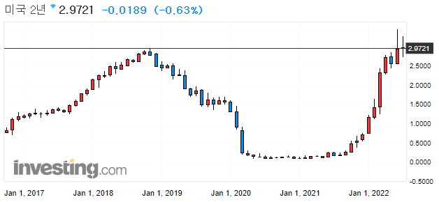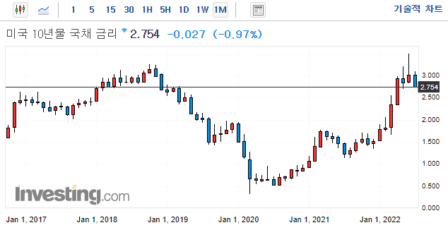 18년도에는 QT규모가 1500억 규모였으나, 이번 연준의 QT는 2200억 달러 규모입니다. 채권 수익률이 추가로 상승한다면, 이번 QT규모 만큼일텐데요. 이러한 상황에서 향후, 경기 침체를 우려가 깊어지면서, 채권 수익률을 누르는 압력으로 작용하는 모양입니다.