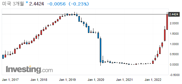 초 단기 금리(3개월 물) : 단기적인 자금 유통과 관련됩니다. 급등은 단기적 시장 위험 의미