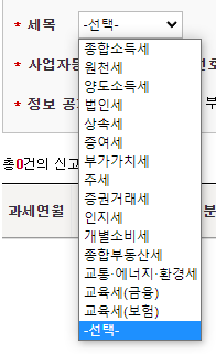 2. 세목 : 어떠한 세금에 대해 전자신고 내역을 검색할지 선택합니다.