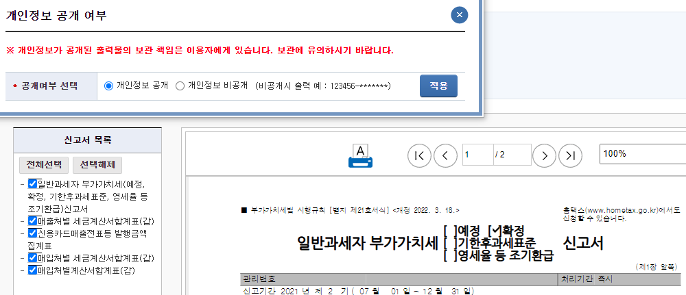 부가가치세 확정 신고서 발급 방법
