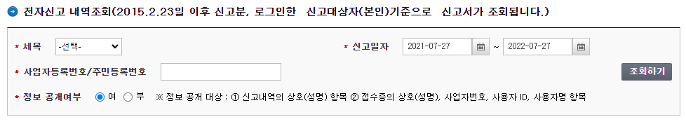 4. 신고일자 : 1년 기간만 검색이 가능합니다. 예를들어 3년치를 검색하기 위해서는 1년식 3번 검색하셔야 합니다.