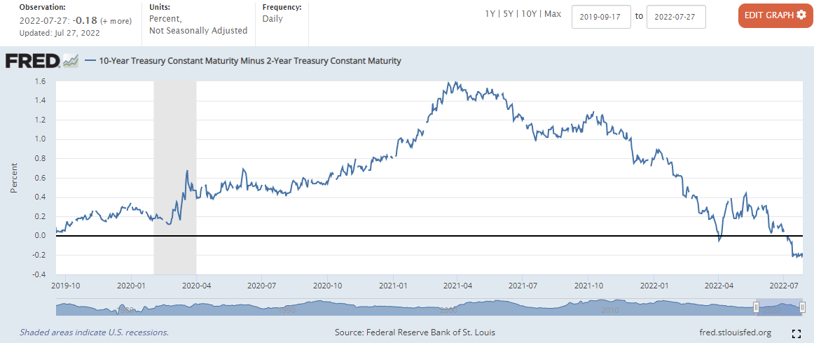 -0.21%에서 0.03상승한 -0.18%마감 (22년 4월 1일과 7월 6일 장단기 금리차 역전)