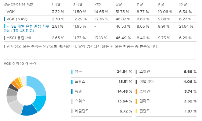 VGK는 선진 유럽 증권의 시가 총액 가중 지수를 추적합니다.
