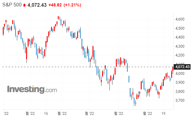 → 시장은 파월 연준 의장에 말을 신뢰하는 것으로 보입니다. S&P가 강한 저항선이였던 4,000을 뚫고 상승하는 모습을 보였습니다. 다만 큰 거래량을 동반한 것은 아니므로 앞으로 상승세를 이어갈지는 지켜봐야할 것 같습니다.