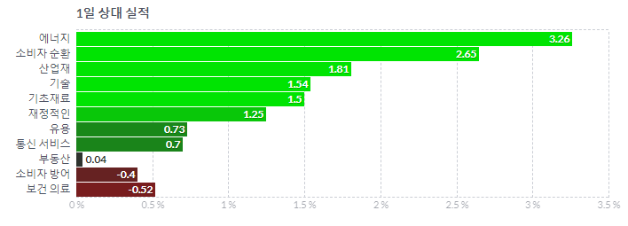 미국 섹터별 주가 등락