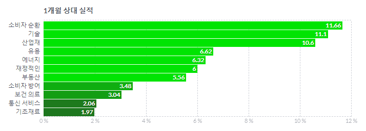 섹터별 등락율 변화