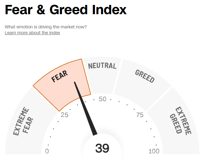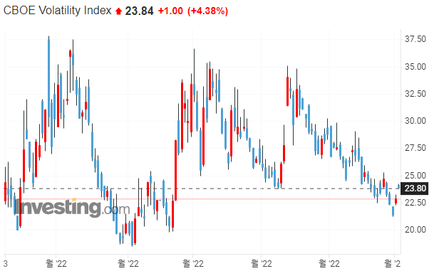 ▷VIX지수가 23.39까지 하락하였습니다. 공포 탐욕 지수도 42로 많이 호전된 상황인데요. 경기침체 우려가 현실화되면서, 오히려 경기침체를 우려한 Fed가 더 이상 금리를 인상하지 못할 것이라는 기대가 커지고 있는 상황입니다.