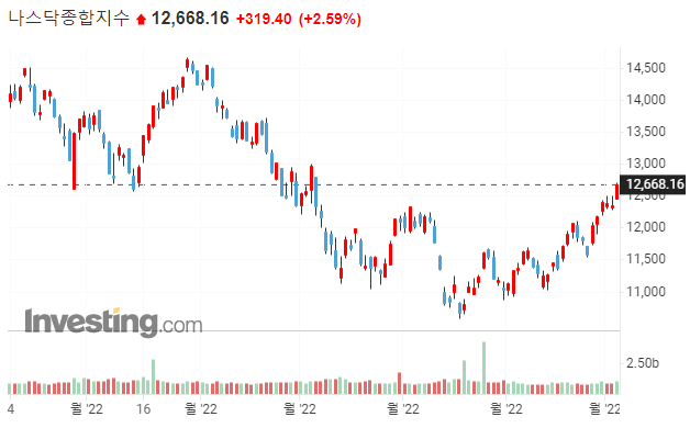 → 현재 시장의 인식은 [글로벌 경기 둔화] → [경기 침체 예상] → [긴축 멈춤거나 조절] → [주가 상승]으로 보는 상황입니다.