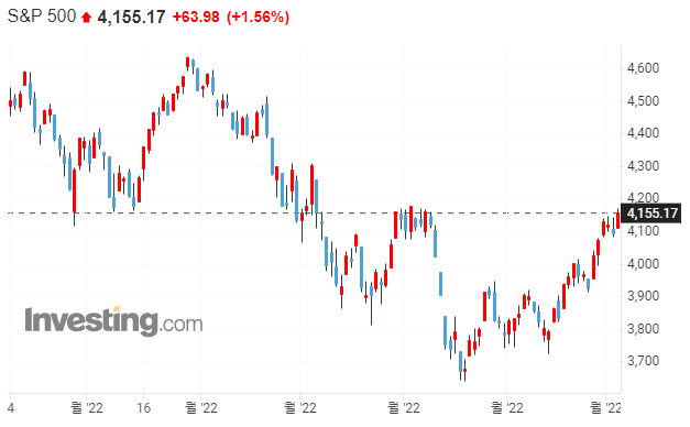 → 시장은 파월 연준 의장에 말을 신뢰하는 것으로 보입니다. S&P가 강한 저항선이였던 4,000을 뚫고 상승하는 모습을 보였습니다. 다만 큰 거래량을 동반한 것은 아니므로 앞으로 상승세를 이어갈지는 지켜봐야할 것 같습니다.