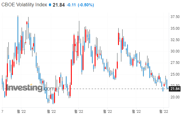 ▷VIX지수가 23.39까지 하락하였습니다. 공포 탐욕 지수도 42로 많이 호전된 상황인데요. 경기침체 우려가 현실화되면서, 오히려 경기침체를 우려한 Fed가 더 이상 금리를 인상하지 못할 것이라는 기대가 커지고 있는 상황입니다.