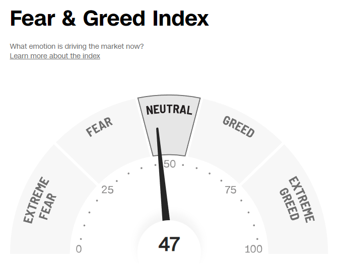 → 8월 2이 앞서 말씀올린 것 처럼 연준 의원들에 매파적 발언이 이어졌는데요. 개인적으로는 양적긴축에 가장 크게 영향을 받아야하는 러셀이 하락하지 않고 버티는 모습이 아직 시장에 센티멘탈은 강하다고 느꼈습니다. 실제로 공포 탐욕지수는 최근 계속 상승하여, 41입니다.