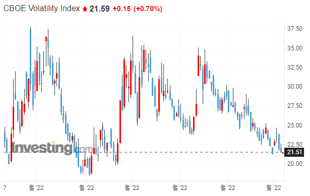 → 7월 28일 FOMC기자회견에서 파월 의장이 현재 경기 침체상태가 아니라는 발언과 경기 침체가 일어나는 것은 Fed가 바라지 않는 일이라는 발언 등을 시장이 긍정적으로 받아들인 것 같습니다. 또한 올해 3~3.5% 금리인상이 적절하다고 말했는데요. 올해 남은 FOMC가 3번이며, 현재 금리가 2.5% 임을 가만할 때, 50bp, 25bp, 25bp 금리 인상을 시장이 예상하는 것 같습니다.