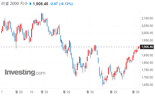 다우 -0.26% / S&P500 -0.08% / 나스닥 +0.41% / 러셀 2000 -0.13%