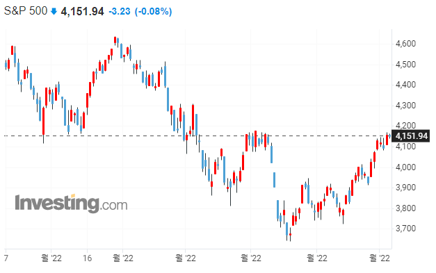 증시에 대한 구루들의 의견 JP모건 트레이딩 데스크 : S&P500 바닥은 3200~3400선일 것 모건스탠리의 제임스 고먼 CEO : 미국이 경기 침체를 겪을 가능성은 거의 없다. 뱅크오브아메리카 : 하반기 완만