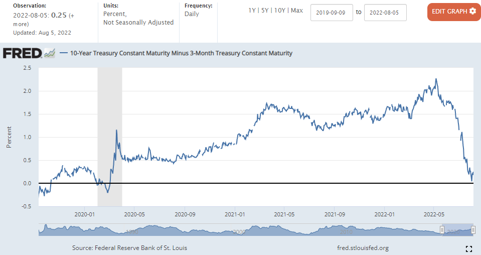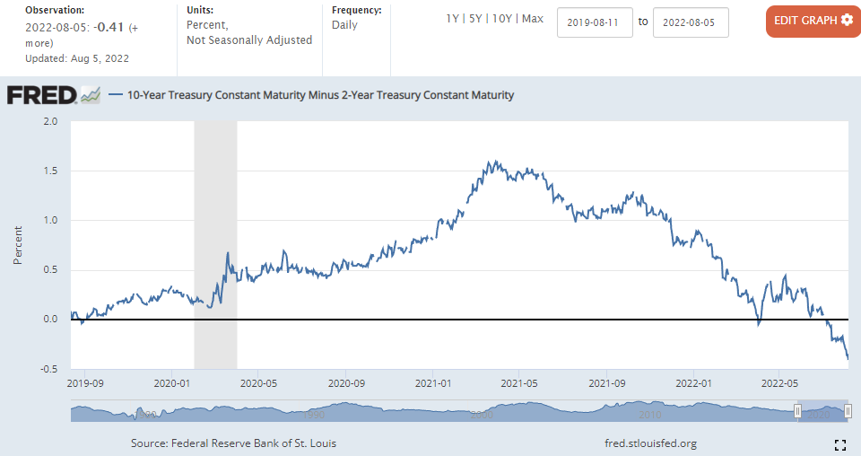 -0.35%에서 0.06하락한 -0.41%마감 (22년 4월 1일과 7월 6일 장단기 금리차 역전)