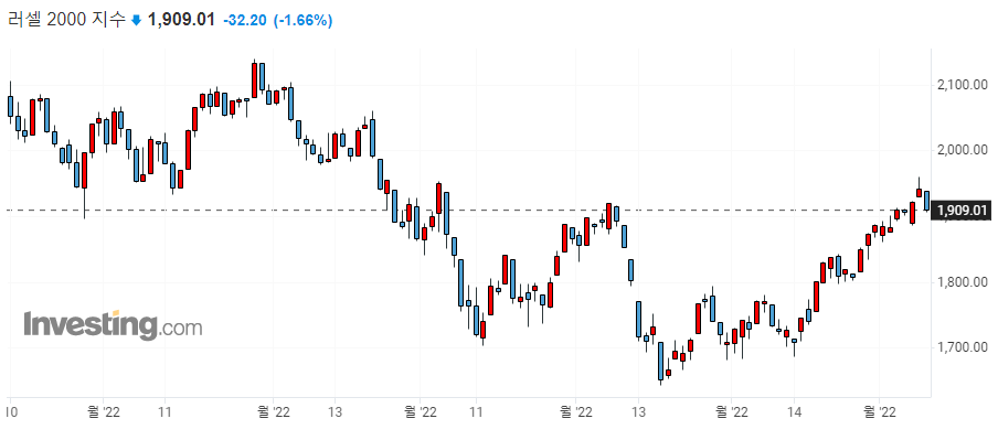 다우 -0.18% / S&P500 -0.42% / 나스닥 -1.19% / 러셀 2000 -1.66%