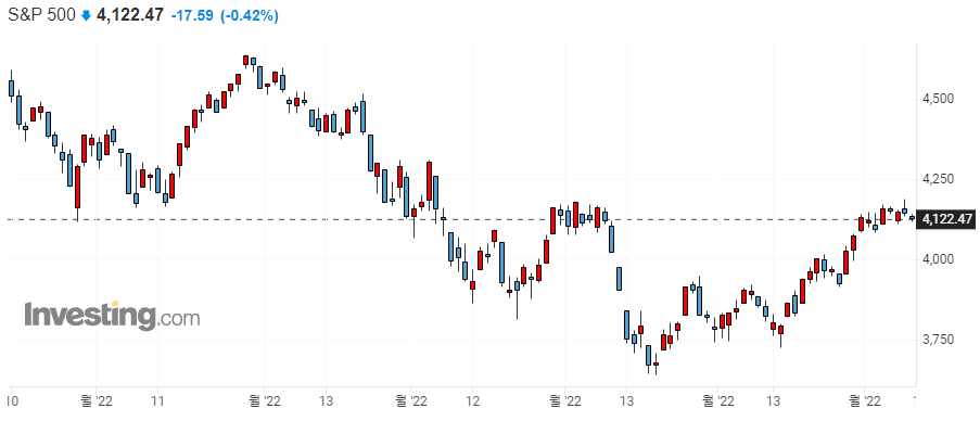 증시에 대한 구루들의 의견 JP모건 트레이딩 데스크 : S&P500 바닥은 3200~3400선일 것 모건스탠리의 제임스 고먼 CEO : 미국이 경기 침체를 겪을 가능성은 거의 없다. 뱅크오브아메리카 : 하반기 완만